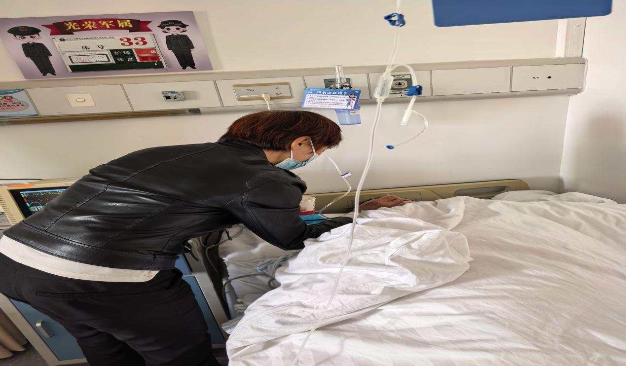 今年,我县在深入开展“替战士看爹娘 为军属办实事”活动中了解到这一情况后,迅速启动帮扶机制。县退役军人事务局主动对接中国人民解放军联勤保障部队第九四二医院,为康凯母亲粟阿姨提供全程接送、24小时陪护和医疗费用报销等暖心服务。住院期间,退役军人事务局领导专程前往慰问战士家属并安排专人细心照料。粟阿姨感动地说到:“自从孩子他爸走后,家里就靠我一个人撑着。你们不是亲人,却比亲人还亲。”