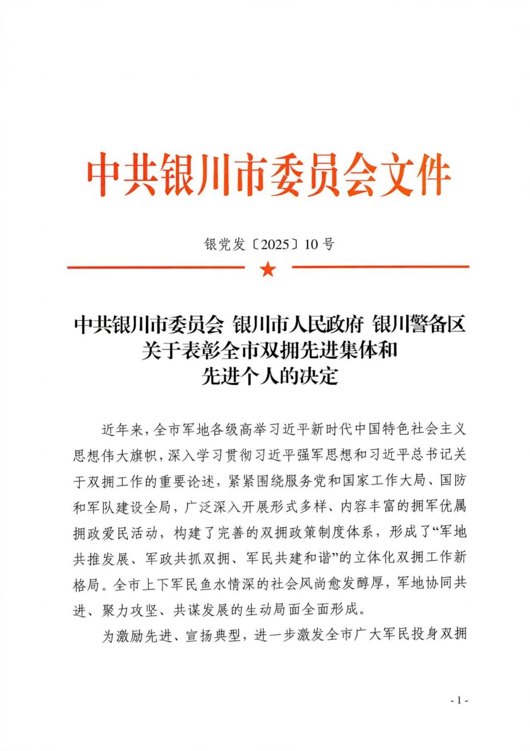 点击下方图片查看银川市双拥先进集体、个人名单(全)↓↓↓