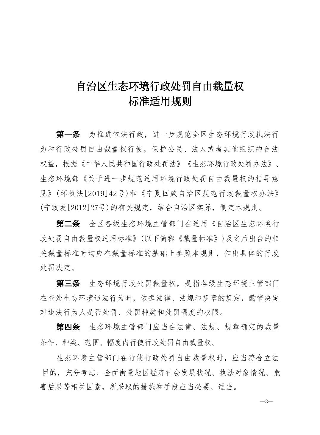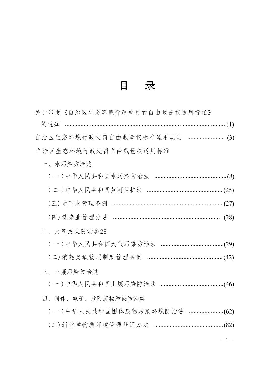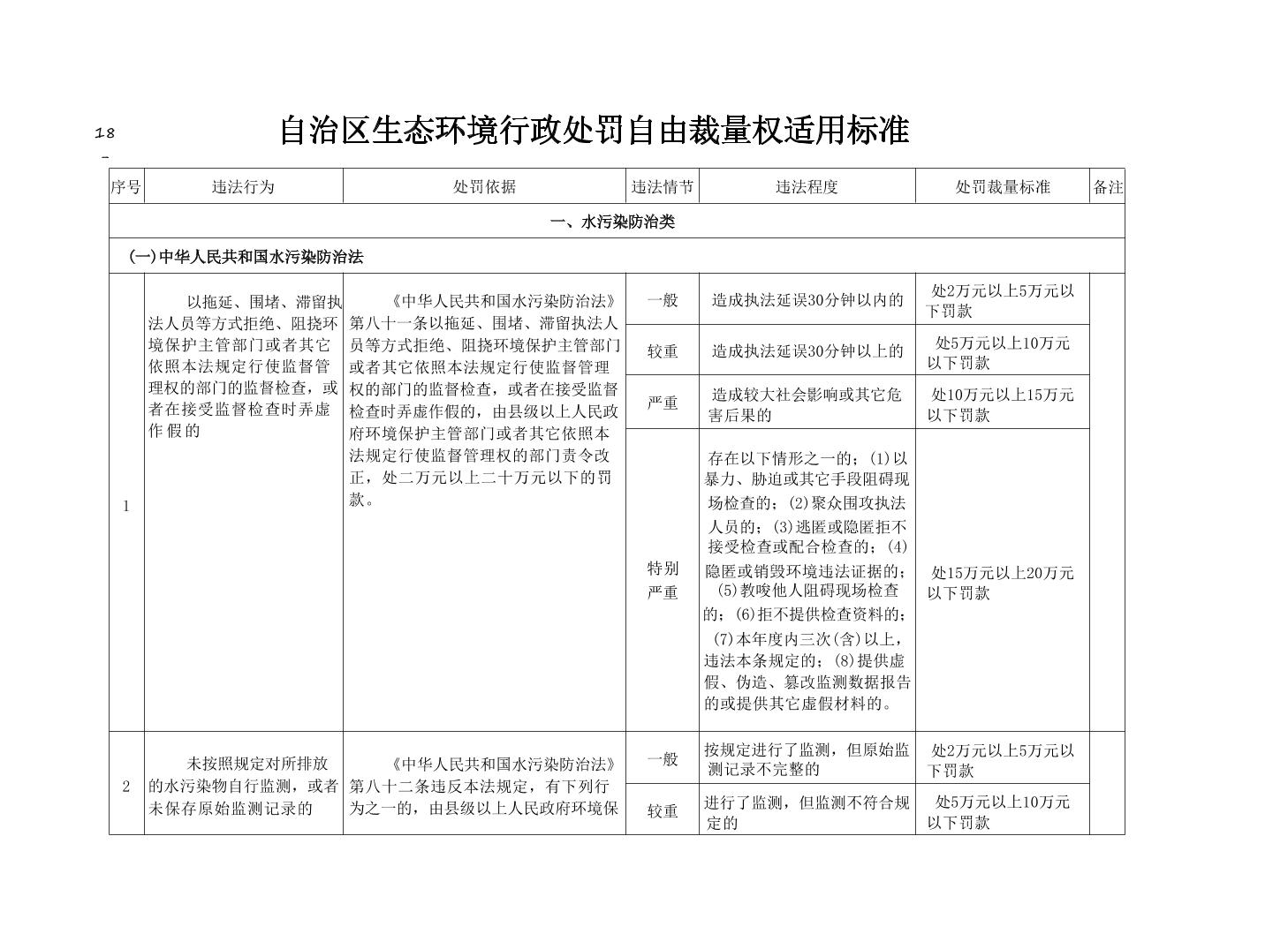 关于印发《自治区生态环境行政处罚自由裁量权适用标准》的通知
