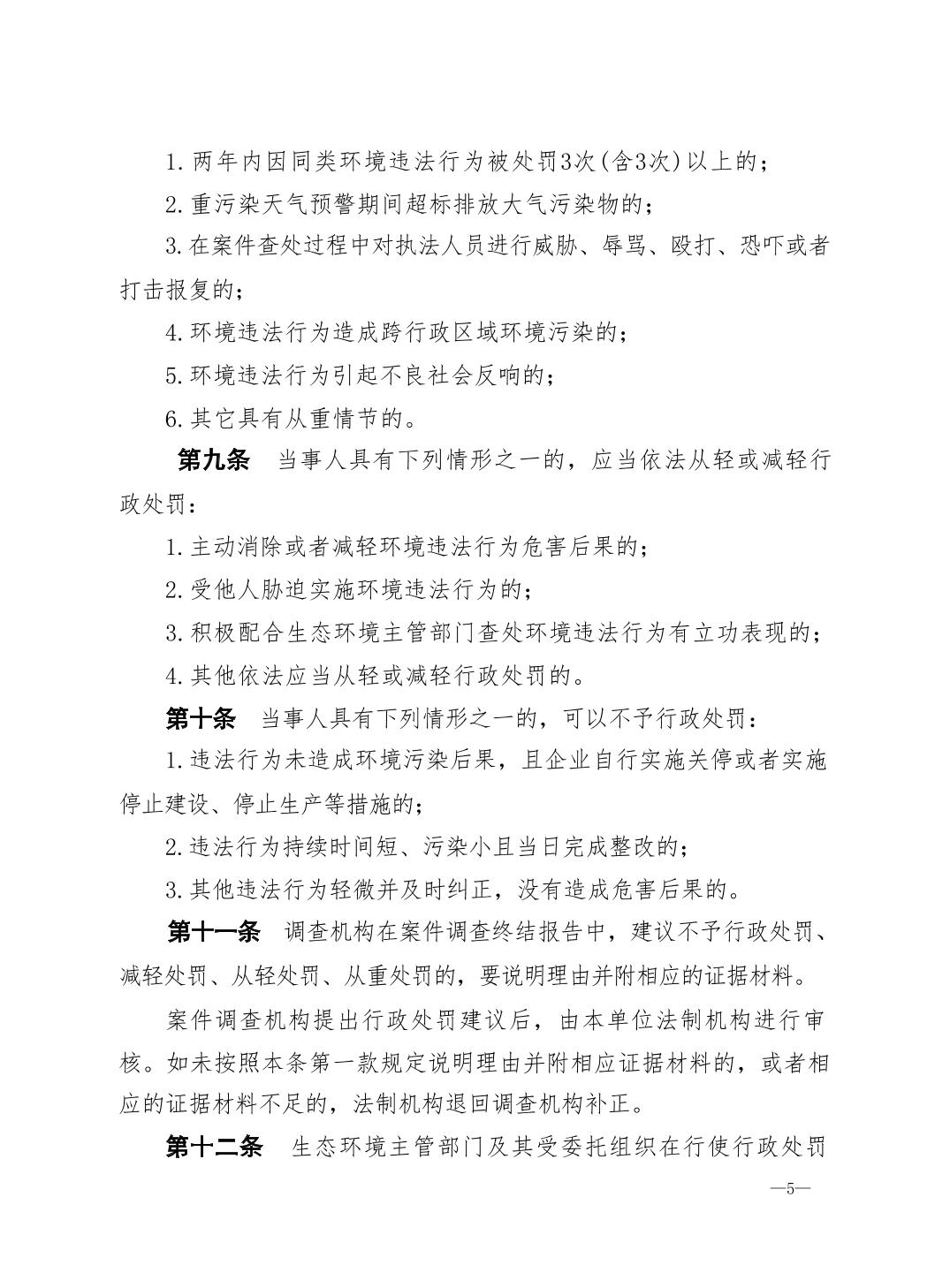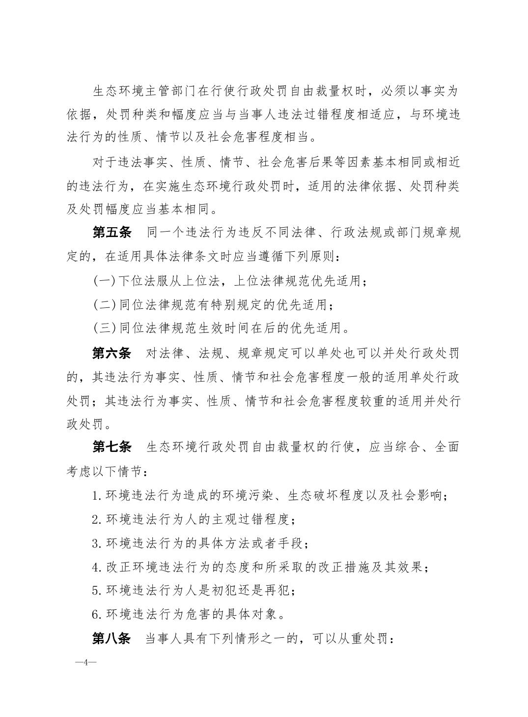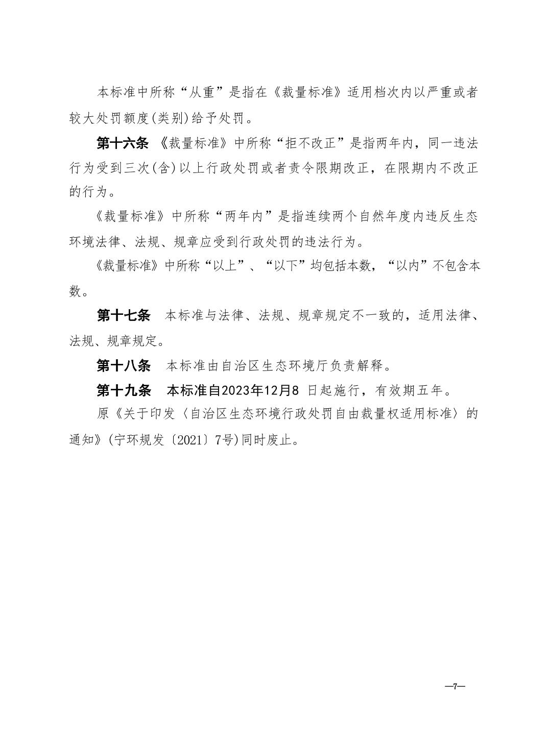 关于印发《自治区生态环境行政处罚自由裁量权适用标准》的通知
