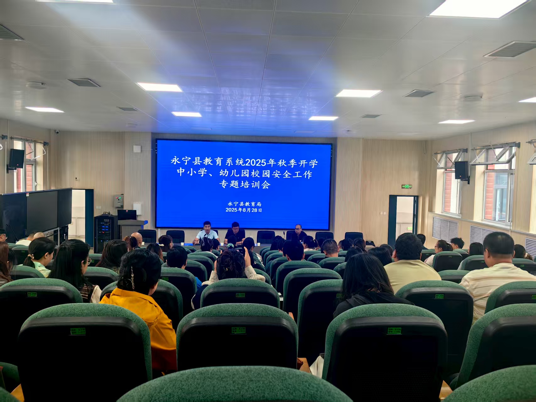 为进一步提高全县中小学、幼儿园校园安全治理能力,全面提升全县校园安全治理水平。永宁县教育局组织召开秋季开学前安全工作专题培训。本次培训聘请县市监局、消防大队、疾控中心、公安、检察院等部门领导及业务骨干做安全专题培训,教育局分管安全工作领导、各学校分管安全工作副校长和安全工作主任160余人参加培训。