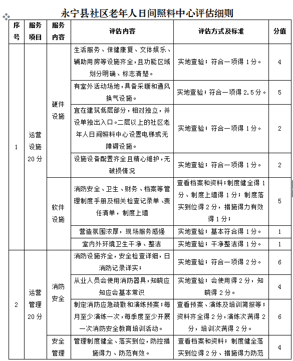 为加强我县养老服务设施运营管理,进一步发挥我县农村老饭桌和社区老年人日间照料中心为老服务作用,对2021年12月30日印发的《永宁县农村老饭桌建设与管理实施细则》作了修订,并制定《永宁县社区老年人日间照料中心实施细则》。