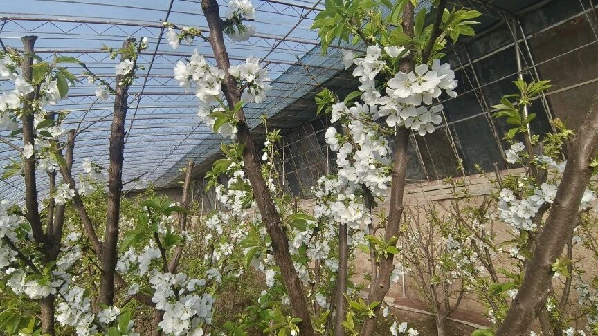 隆冬时节,朔风凛冽,望洪镇西玉村的樱桃温棚内却暖意融融、暗香浮动。枝丫间,樱桃花缀满枝头,花瓣薄如蝉翼,花蕊嫩黄点缀,微风拂过,花枝轻颤,花香裹挟着泥土清新漫溢开来,宛如冬日里凝结的一场“春雪”,既藏着冬日的浪漫,更孕育着丰收的甜蜜希望。农户们手持园艺剪细心疏花、授粉,指尖流转间,是对美好生活的期许,更是旧棚改造后乡村产业蓬勃生长的生动写照。