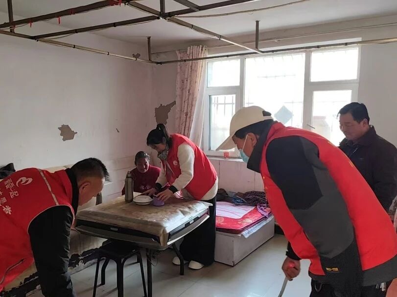1月21日下午,志愿服务暖民心行动全面开展。党员志愿者聚焦困难失能群众的实际需求,开展精准化、多元化帮扶工作,为其清扫家庭卫生、上门发放生活慰问品,用实际行动传递党组织的关怀。同时,党员志愿者与群众面对面沟通,细致摸排其生活物资储备、日常照料保障等情况;围绕医保报销、养老保险缴纳等惠民政策要点进行通俗解读,切实把“我为群众办实事”落到实处,以志愿服务践行党员使命担当。