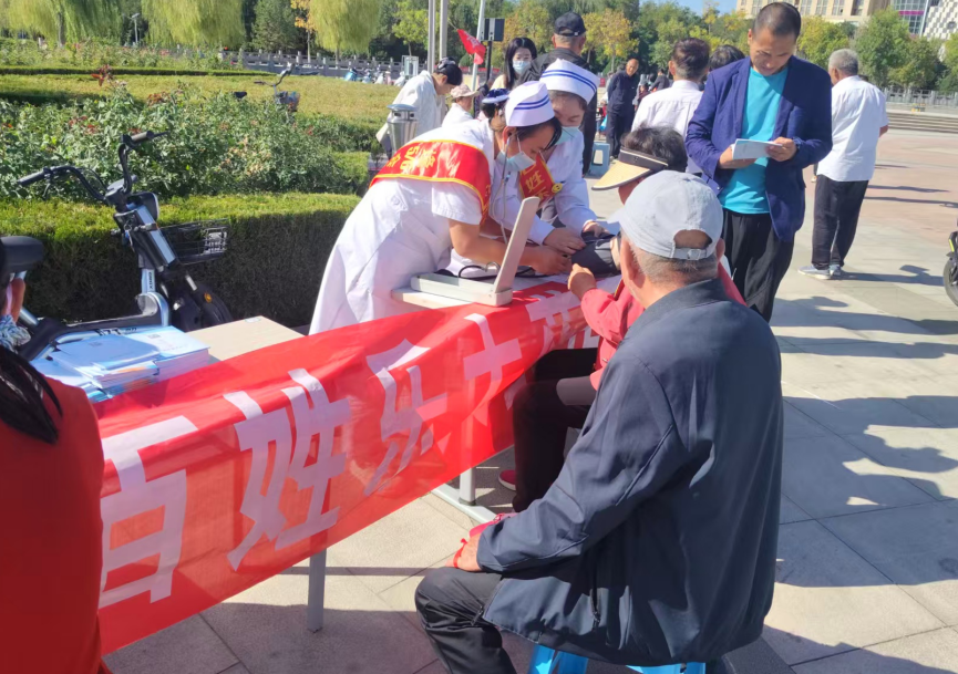 在广场中心的健康义诊服务区同样人气高涨,来自多家定点医疗机构的医护人员为群众提供免费血压测量、听诊心肺,牙齿检查等服务,针对老年人、慢性病患者等重点群体的健康需求,给出个性化诊疗建议和用药指导。同时,医护人员结合临床案例,讲解医保门诊特殊病种认定、慢性病用药报销等实用知识,帮助群众精准对接医保待遇,让健康保障更有温度。